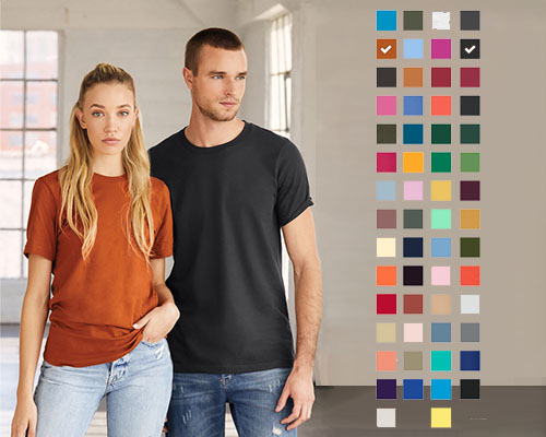 One of our most popular tee's the BELLA+CANVAS Jersey tee is super soft and comes in a TON of colors.